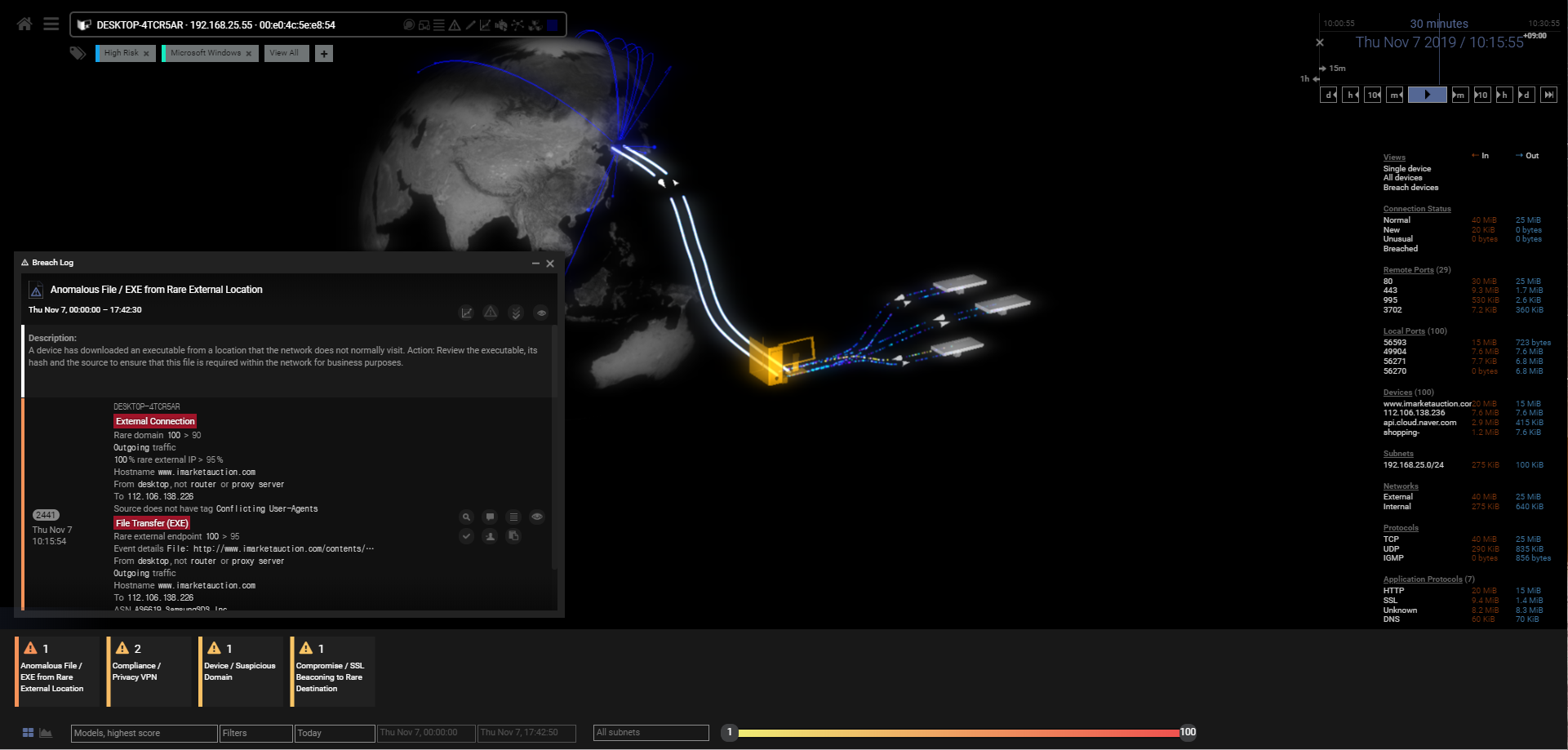 고객들은 그들이 보유한 공격 데이터 중 활용 가능하고 고객이 검증하고자 하는 영역에 대해 공격테스트를 수행하였으나, 파일 등 실물데이터에 대한 행위분석 등을 수행하는 샌드박스와는 다르게, 네트워크 보안 제품의 관점에서 공격 데이터의 유형이 네트워크 보안 영역으로 한정되었습니다. Darktrace EIS 는 네트워크 보안의 관점에서 유입/내부전파/유출/컴플라이언스의 측면에 대한 강점을 가지고 있습니다.